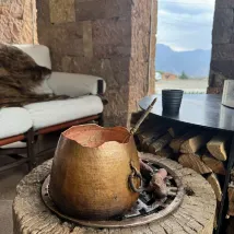 피크닉 체험: 캐러밴 볶은 차 + 고기와 야채를 요리하는 불. 캐러밴은 전통적으로 체력을 보충하기 위해 짠 보이차를 마십니다. 수원은 동굴에서 잘라낸 빙하 조각에서 나옵니다.