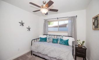 You will enjoy your stay at this fully furnished LUXURY rental in the center of Yuma. It has 4 bedrooms, 2 bathrooms, and a 5th bedroom/game room that can sleep up to 10 people. The home has just been completely remodeled with high end finishes including granite counter tops and stainless steel appliances. Relax next to the pool or on the large patio while you BBQ. This home is just a short drive away from Mexico, Colorado River, sand dunes, and Yuma Proving Grounds.