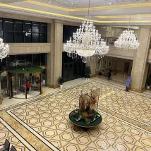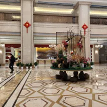 호텔의 외관과 위치를 보고 제 선택이 옳았음을 느꼈습니다. 홀에는 결혼식을 주최하는 호텔에서 일반적으로 허용되는 결혼식 꽃꽂이가 있습니다. 과일과 우유가 방으로 배달되었습니다. 조식당은 넓고 음식도 다양합니다.