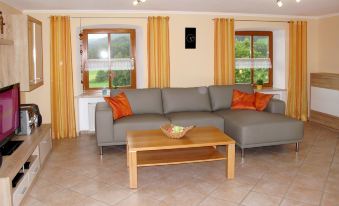 3-family house "Freisinger". In the district of Zachenberg/Zierbach 9 km from the centre of Bischofsmais, 7 km from the centre of Regen, 90 km from the centre of Regensburg. For shared use: property 1'000 m2 with meadow, orchard. Barbecue, children's playground (slide, swing), parking on the premises. Supermarket 7 km, bus stop "Triefenried" 950 m, railway station "Triefenried" 950 m, outdoor swimming pool 7 km. Mountain railway 6 km, ski lift 6 km, cross country ski track 2.5 km. Please note: the owner lives in the same residence. 2-room apartment 90 m2 on 1st floor. Tasteful furnishings: living/sleeping room with 2 fold-away beds, dining table, satellite TV, hi-fi system and DVD. 1 room with Dressing room with 1 bed and 1 double bed. Kitchen (oven, dishwasher, 4 ceramic glass hob hotplates, toaster, kettle, microwave, electric coffee machine) with small dining table. Bath/shower/WC. Heating. Patio. Deck chairs (2). Facilities: children's high chair, baby cot. Internet (WiFi, free). Please note: non-smokers only. Smoke alarm, fire extinguisher.