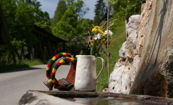 Our rustic hut is 500m above the east bank of Thumersbach, a district of Zell am See. 160m² of rustic flair offer spacious space, with a cozy seating area, satellite TV and a fireplace. On the ground floor there are two bedrooms with double beds, a bathroom with shower and toilet and a separate toilet. In the upper area there are two small bedrooms with three beds each. Own washing facilities as well as a sofa and satellite TV. Around the hut beautiful play / sunbathing areas with lounge furniture, garden furniture, grill and fire bowl. At the farm, guests can also enjoy our homemade products. The children are especially looking forward to the animals (sheep, pigs, chickens, rabbits and bees)About pets:No pets allowed.About checkOut:Check out before 10:00 AM.About children:Children allowed: ages 0-17.About checkIn:Check in after 3:00 PM.About smoking:Smoking is not permitted.About minBookingAge:Minimum age to rent: 18.About events:No events allowed.
