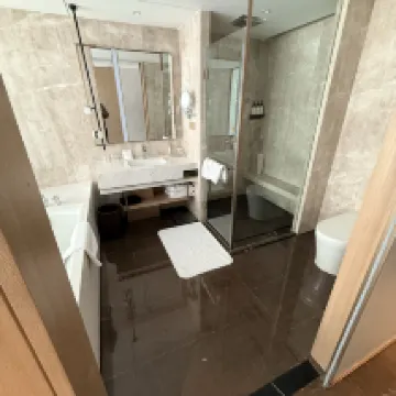 방도 넓고, 욕실에는 큰 욕조도 있었고, 변기는 스마트 비데였어요. 세면용품도 아주 좋았어요.