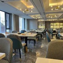 호텔 레스토랑도 훌륭합니다. 아침 식사의 종류는 매우 풍부하고 맛도 매우 좋습니다. 레스토랑 외에도 호텔의 체육관도 훌륭합니다. 시설이 잘 갖춰진 헬스장에 매우 만족했습니다.