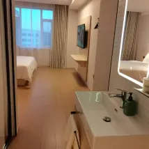 호텔 로비에 들어서는 순간부터, 싱그러운 녹색 장식 스타일에 놀라실 것입니다. 객실은 매우 세련되게 꾸며져 있으며, 침구는 시린먼 매트리스이고, 베개는 딱딱한 베개와 부드러운 베개로 구분되어 있습니다. 여기서 보낸 모든 순간은 매우 편안했습니다. 출장이든 휴가든, 정말 좋은 선택이에요! 다음에는 주저없이 여기를 선택하겠습니다!