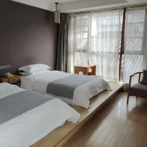 設施:房間內一次性用品質量不錯 拖鞋也是比較好的 榻榻米很適合帶小朋友的家庭 服務:需要交按金 前台態度都很好 有要求能滿足都會滿足 環境:景區風景很漂亮 下雨也很美 外賣可以送上樓 需要中轉電梯 房間很乾凈 窗户外景色也很美