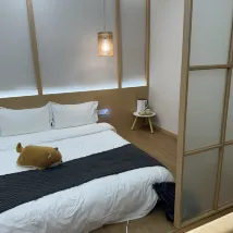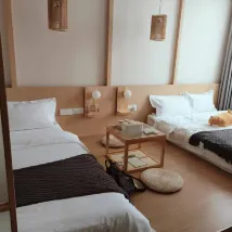 로얄온천과 매우 가깝습니다. 택시비 8~10위안입니다. 다다미가 매우 잘 꾸며져 있고, 냄새도 없고, 벌레도 없습니다. 15제곱미터 정도지만 충분합니다. 제공되는 일회용품의 품질이 좋고 샤워젤의 향기가 매우 좋습니다. 분수대, 도서관, 카페, 야외 다이닝 바가 마련되어 있습니다. 활동을 위한 잔디밭. 가게 주인은 젊은 남자이고, 당신의 질문에도 매우 친절합니다. 나는 그를 데려다가 한 번 데려왔고, 생리 기간 동안 나에게 무료 선물을 주기도 했습니다. 냅킨, 아침식사로 만두국수를 추천해 줬는데 ㅎㅎ 정말 날씨가 좋지 않아서 그 아름다움이 제대로 드러나지 않았네요. 마당에 잔디가 덜 무성해서 봄 햇살이 나올 때까지 기다리겠습니다. 그러면 안뜰이 있는 방을 시험해 보세요~ 추천합니다!
