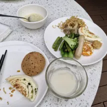 5) 아침 식사는 평범했고, 중국 음식만 있었습니다. 좌석 종류도 이상했습니다. 하나는 너무 낮았고, 다른 하나는 유아용 의자였는데, 너무 불편했습니다! 음식 종류도 제한적이었고, 그냥 평범한 중국 음식뿐이었습니다. 커피는 없었고 화학약품 냄새가 나는 오렌지 주스만 있었습니다!