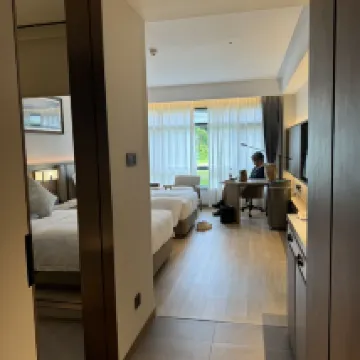 새로 오픈한 호텔의 하드웨어 시설은 매우 깨끗하고 정돈되어 있습니다. 아이들을 데려왔을 때 스위트룸으로 업그레이드해 주고 아침 식사도 제공해 주었습니다. 스위트룸은 꽤 크며, 거실, 침실, 욕실, 드레스룸이 완비되어 있습니다. 정말 좋은 경험이었습니다! 호텔은 창롱(Chimelong)에서 멀지 않으며 차로 약 10분 거리에 있으며 비용 효율적이며 적극 권장됩니다.