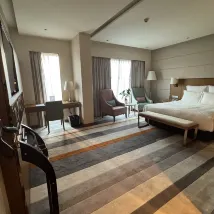 이번에는 이그제큐티브 룸으로 무료 업그레이드를 받았습니다. 방에 들어서자마자 퀴퀴한 냄새가 났는데, 프런트 데스크의 올리비아에게 알리니 바로 직원에게 알려서 조치를 취하게 했습니다. 저녁 식사 후 돌아왔을 때는 냄새가 완전히 사라져 있어서 매우 만족스러웠습니다.