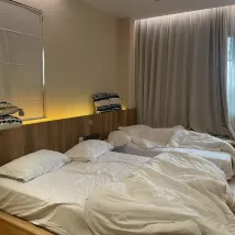 很滿意,預訂兩房一廳有兩個淋浴和浴缸,三個廁所,也配備了一次性浴缸套,非常細心 地方打掃得也很乾淨,服務很細心主動詢問洗浴用品夠不夠,酒店大堂有飲品和杯麵販賣,價錢合理,比園內便宜,可惜房間內沒有雪櫃,其他都很滿意