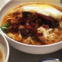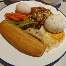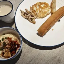아침 식사는 매우 풍성하고 두부 푸딩, 차가운 토끼고기, 예르바 등 지역 특산 요리도 있습니다.