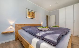 The south-west-facing apartment is located in a central, quiet and very good residential area in the second row of a plot of land with two holiday homes. With the completion of the new building completely renovated in January 2019, it offers space and comfort for up to 4 people, Internet (WiFi), 3 Panasonic TVs with hotel mode, Sky, Playstation PS4, FIFA 20, karaoke, hi-fi system CD and Blue Touth, Blue-Ray player and hotel safe with digital display. The modern kitchen is equipped with high-quality Miele electrical appliances (CleanSteel oven, fridge / 4-star freezer, QuickPowerWash dishwasher, glass ceramic induction hob, extractor hood in glass design with headroom and LED lighting). The apartment welcomes you with its own south-west facing garden and terrace, bright and light rooms with floor-to-ceiling windows, a clean gas fireplace, modern furniture with designer furniture, 2 bedrooms, living / dining area, bathroom with Villeroy & Boch sanitary fittings , Rain and massage concealed shower, hair dryer and towel design radiator, hallway and storage room with Miele washer dryer (WT1 QuickPower). Directly at the house are a parking space and a shed for bicycles / prams etc. available.