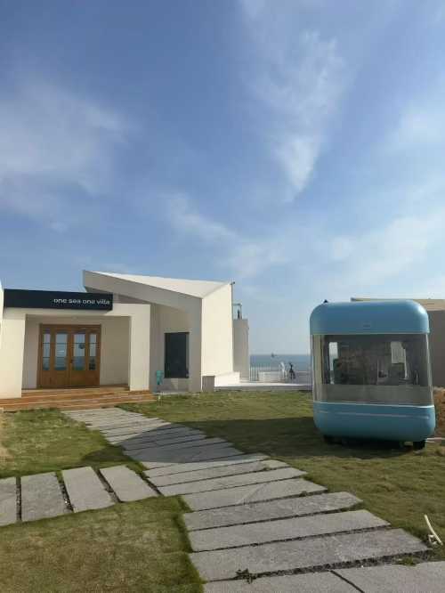 눈을 뜨면 바로 바다🌊, 영성에 있는 이 민박집은 평생 머물고 싶게 만들어요. 현대적인 순백 건축과 푸른 하늘, 푸른 바다가 어우러져 사진을 찍기만 해도 작품 같은 느낌이에요. 180° 바닥부터 천장까지 이어진 창문이 바다 수평선을 정면으로 바라보고, 아침에는 파도 소리에 자연스럽게 깨어나요. 커튼을 열면 ‘침대에 누워 일출을 보는’ 경험을 할 수 있어요. 발코니에는 등나무로 만든 흔들의자가 놓여 있고, 저녁에는 커피를 들고 일몰을 기다리며 분홍빛 노을이 바다 전체를 물들이는 모습을 감상할 수 있어요. 눈 오는 날에는 세상의 끝에 있는 듯한 고독한 아름다움도 느껴져요. 3분만 걸어 내려가면 한적한 해변에 바로 닿아, 아무도 없는 바다를 독점할 수 있어요.