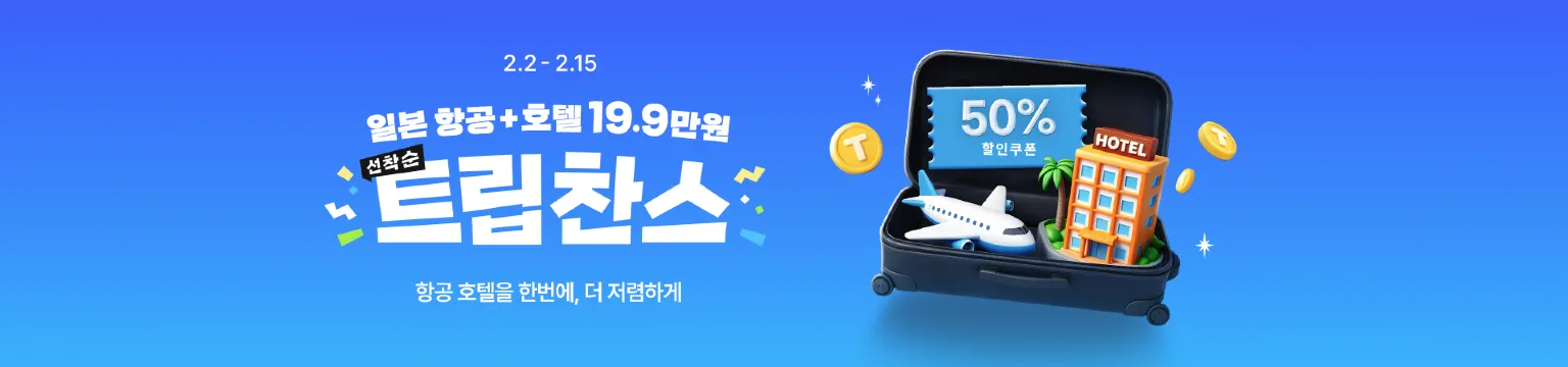 🔥 주말 깜짝 특가🔥 항공 2만원 · 호텔 2만원 할인 오전 10시 30분 선착순