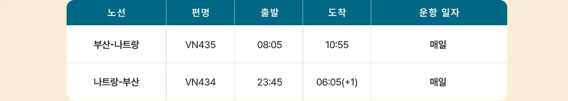 부산 - 나트랑 운항 스케줄