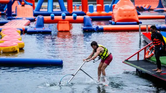 현장에 구명조끼와 인증된 인명구조원이 있어 안전이 최우선입니다.