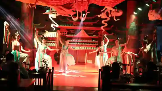 식사 내내 전통 공연이 펼쳐져 "다섯 가지 요리를 맛보고 세 차례 춤을 즐기는" 리듬을 만들어, 식객들이 "식사하며 전시를 관람하는" 경험을 할 수 있습니다.