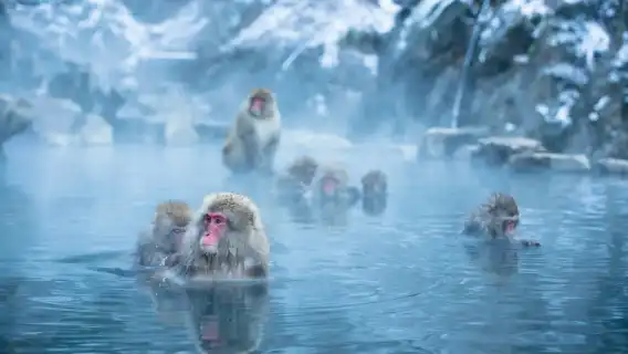 "지옥계곡"에서 야생 스노우 몽키가 온천에 몸을 담그는 독특한 장면을 가까이에서 관찰할 수 있어 생생하고 잊을 수 없는 경험을 선사합니다.