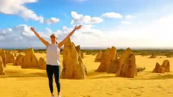 호주 서해안을 여행하며 지질학적 경이인 더 피나클스 데세르를 탐험하고, 숙취 베이의 아름다운 풍경을 만끽하세요!