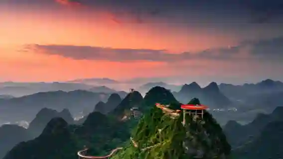 쉬운 등산 코스: 루이봉(如意峰) 관광지, 카르스트 봉우리들의 탁 트인 360도 전망을 즐길 수 있는 곳