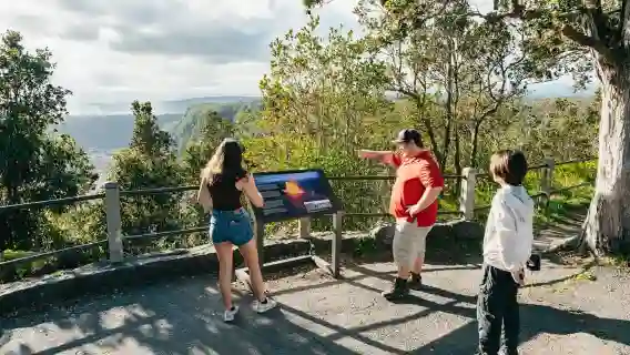 현재의 증기 배출구와 유황 은행을 지나 걸어보세요