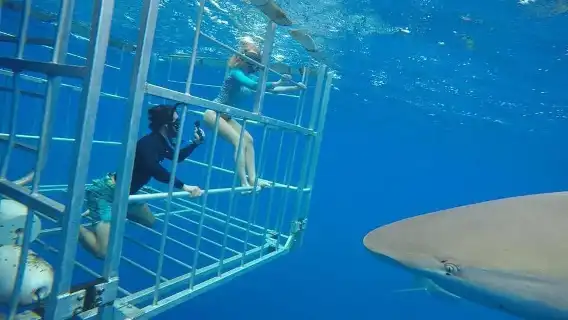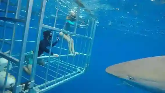 할레와 항구에서 출발하여 안전 케이지 안에서 상어를 가까이에서 관찰하세요. 수영 경험이 필요 없으며, 맑은 바닷물로 선명한 시야를 제공합니다.