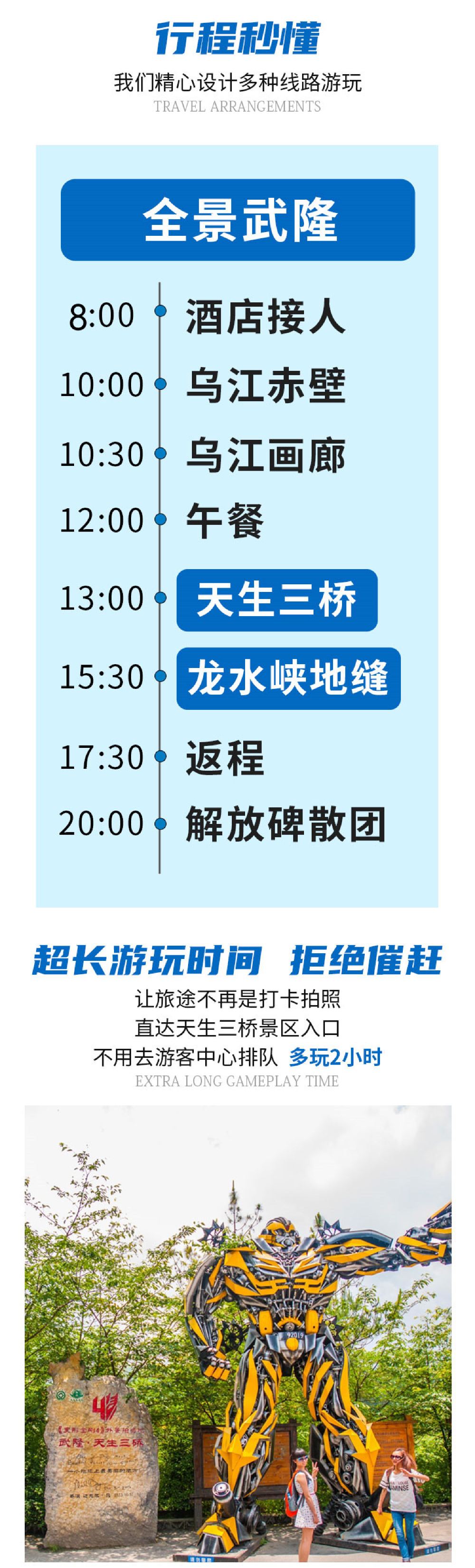 명소 우장 적벽, 우장화랑, 천생삼교, 룽수이샤 디펑을 방문하여, 무릉의 핵심 명소를 깊이 있게 체험하고 핫플레이스를 탐방합니다.