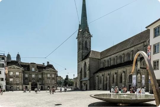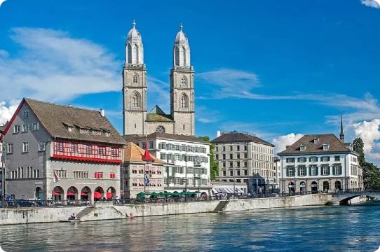 편안한 에어컨 버스를 타고 성과 같은 스위스 국립 박물관, 쇼핑의 거리인 반호프 거리, 금융 지구를 지나갑니다. 엥게 항구(Enge harbour)에서 잠시 멈추어 취리히 호의 경치를 감상하며 사진을 찍을 수 있습니다. 호숫가를 따라 계속 이동하면 웅장한 오페라 하우스와 대학 지구를 지나게 되는데, 여기에는 스위스 연방 공과대학(ETH Zurich)과 취리히 대학교가 자리잡고 있습니다. 취리히 산(Zürichberg) 주변의 여유로운 분위기를 느껴보세요. 미술관을 지나 구시가지로 향합니다. 가이드와 함께 보행자 전용 구역을 걸으며 웅장한 길드 회관, 성 베드로 교회, 그로스뮌스터, 프라우뮌스터를 감상하세요. 이후 가이드와 작별을 고합니다. 자유롭게 관광하며 그림 같은 리마트 강을 따라 걷다 보면 근처의 뷔르클리 광장(Bürkliplatz)에 도착할 수 있습니다. 1시간 동안의 유람선 여행을 즐기며 맑은 취리히 호수와 호숫가의 웅장한 빌라들을 감상하세요. 오디오 가이드 앱을 통해 도시, 호수, 주변의 역사적인 이야기를 들을 수 있습니다. 뷔르클리 광장에서 여정을 마칩니다.