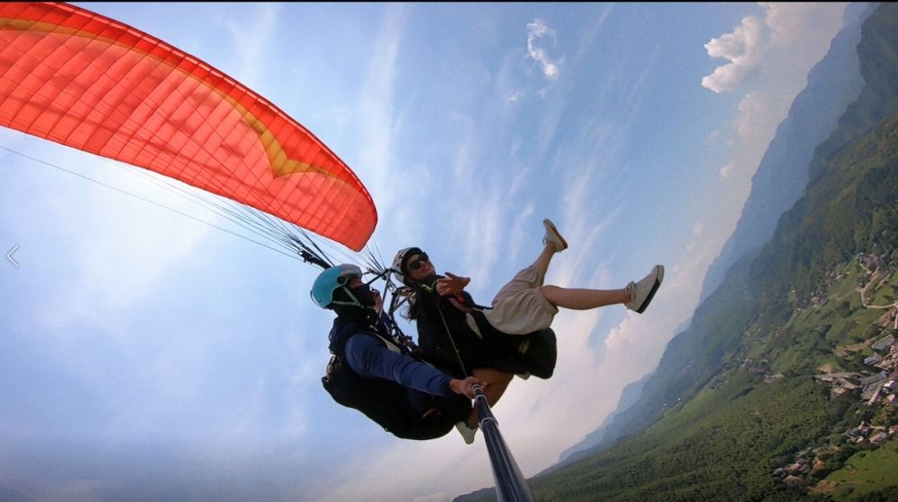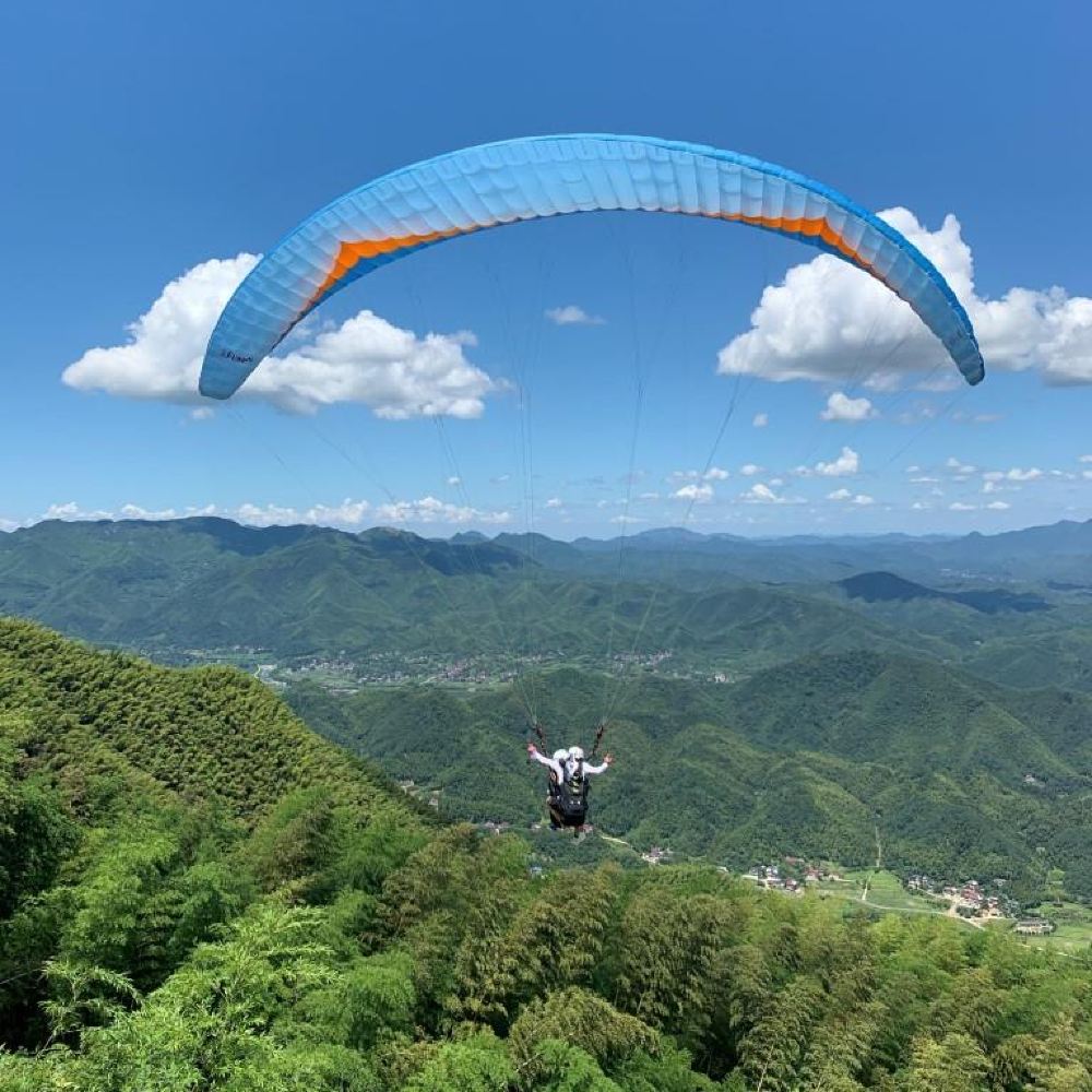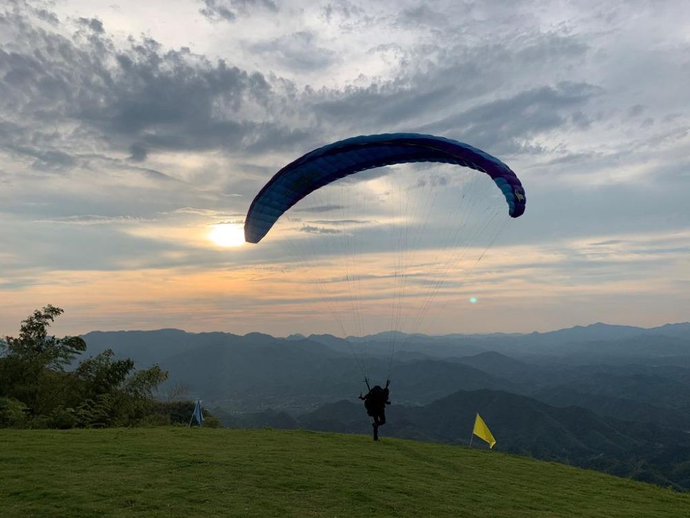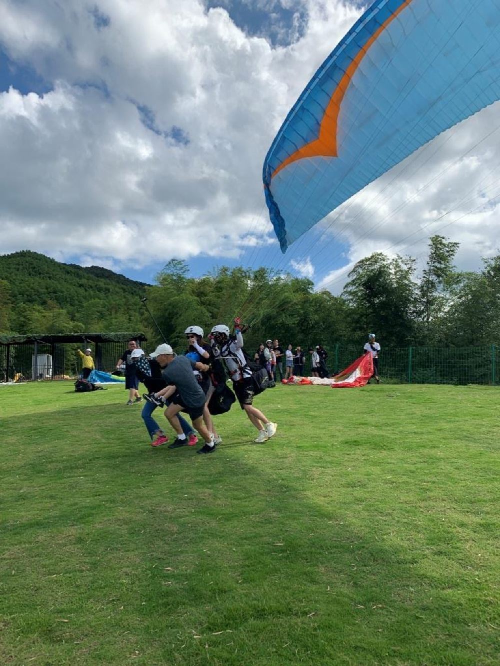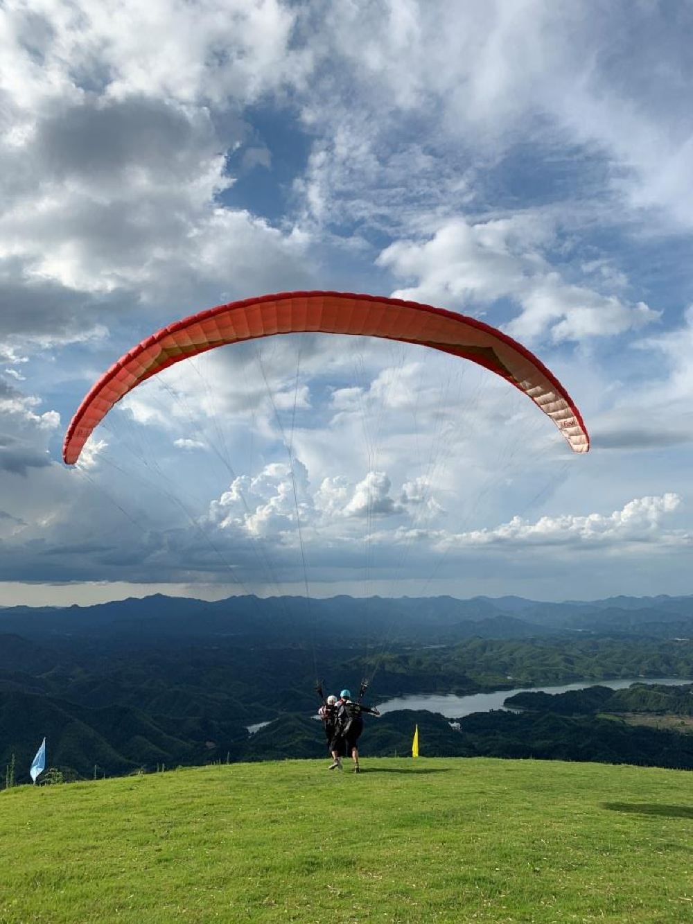 7. 패러글라이딩(이륙) 시에는 강사에게 전적으로 협조하고, 앞으로 약간 몸을 기울이고, 조화로운 힘을 사용하고, 몸의 무게 중심을 조절하며, 산에서 날아갈 때까지 강사가 지시하는 방향으로 달려야 합니다.