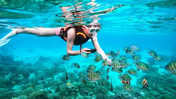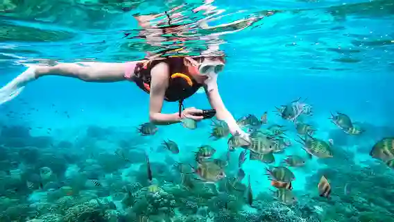투명한 바다 스노클링 천국: 산호초와 열대어 무리를 가까이에서 만나보세요.