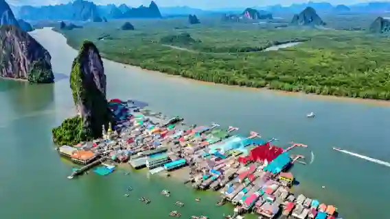 팡응아만은 독특한 석회암 절벽과 암석 지형으로 유명합니다.