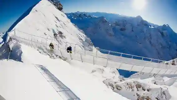 케이블카를 타고 티틀리스에 오르며 알프스의 경치를 감상할 수 있는 파노라마 플랫폼으로 이동하세요. 빙하 내부의 경치를 한눈에 볼 수 있는 아이스 그로토 터널과 유럽에서 가장 높은 현수교 체험도 즐길 수 있습니다.