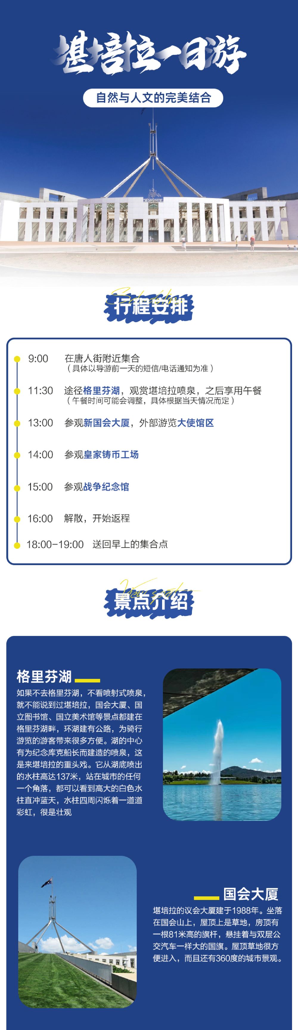 캔버라 대사관 지구 + 국회의사당 + 벌리 그리핀 호수 1일 투어 [시드니 왕복/심층 투어-전쟁 기념관/로열 민트/점심 포함]