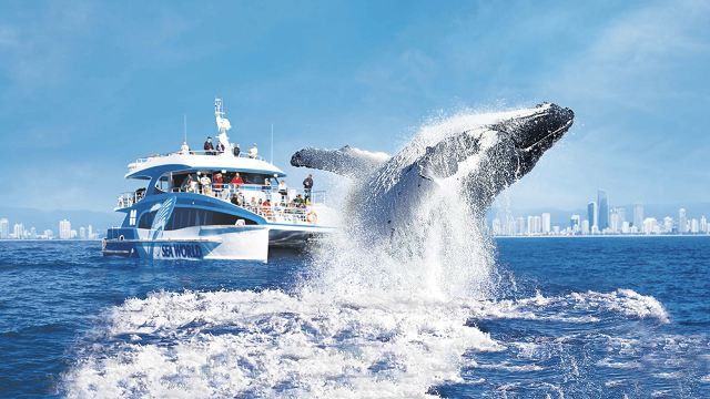 메인 비치(Main Beach)에 위치한 씨월드 크루즈 터미널에서 출발하여 유명한 혹등고래 고속도로(Humpback Highway)로 향하세요. 매년 4만 마리의 고래가 남극에서 그레이트 배리어 리프로 이동하며 골드코스트 해안을 지나갑니다.
