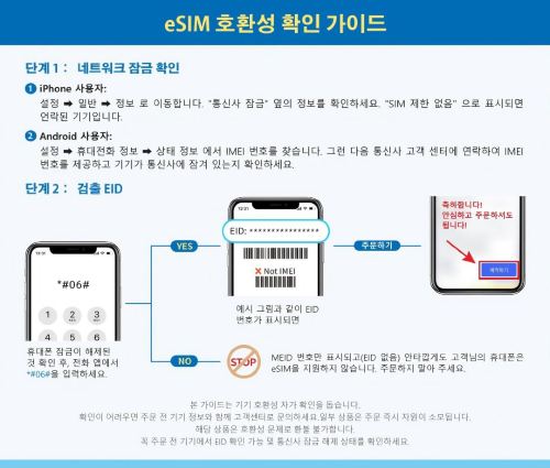 * 구매 전에 위 조건을 충족하는지 확인하세요. 모든 조건이 충족되어야 eSIM을 정상적으로 사용할 수 있습니다.