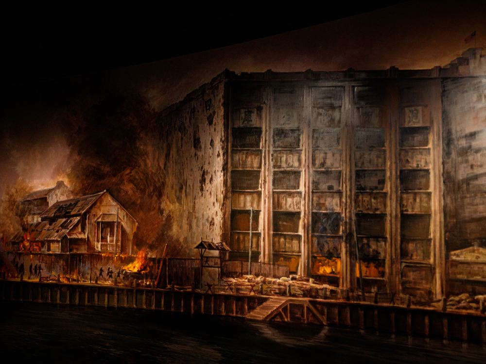 ▲ 사항창고는 첨단 무량 구조(균일한 기둥 배열)를 채택해 대형 스팬 공간을 형성하고 구조적 일체성이 뛰어나며 층고가 최적화되어 있습니다. 6층의 거대한 규모: 너비 64m, 깊이 54m, 높이 25m로 1930년대 자베이 지역의 초고층 건물로, 콘크리트 벽은 탱크 포격도 견딜 수 있을 만큼 두껍습니다. 1937년 송후 전투 당시 견고한 구조와 전략적 고지대 우위로 "800용사"가 일본군에 맞서 싸운 핵심 거점이 되었으며, 4일 밤낮을 함락되지 않았습니다.