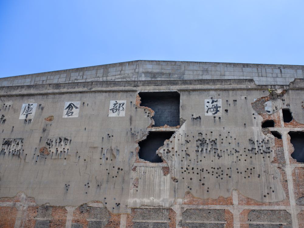 ▲ 서장(西墙)은 1937년 송후 전투(淞滬會戰) 중 '사항창고 방어전'의 전쟁 유적지로, 벽면에는 430여 개의 탄흔과 거대한 포격 흔적이 빼곡히 남아 있으며, 가장 큰 포탄 구덩이는 지름이 1미터가 넘습니다. 이 상처들은 일본군이 4일 밤낮으로 계속된 광적인 공격에서 비롯되었습니다: 탄흔 분포: 벽면에는 벌집 모양의 탄흔이 남아 있는데, 주로 일본군 기관총 사격과 소총 사격 흔적이며, 서쪽 3층 구역의 탄흔이 더 밀집되어 있어 당시 수비군의 핵심 방어 위치를 보여줍니다. 포격 흔적: 벽면 중앙에는 현재 몇 개의 거대한 함몰부가 남아 있는데, 이는 일본군의 직사포 반복 포격으로 인한 것으로, 두께 50cm의 콘크리트 벽을 관통할 수 있는 깊이입니다.