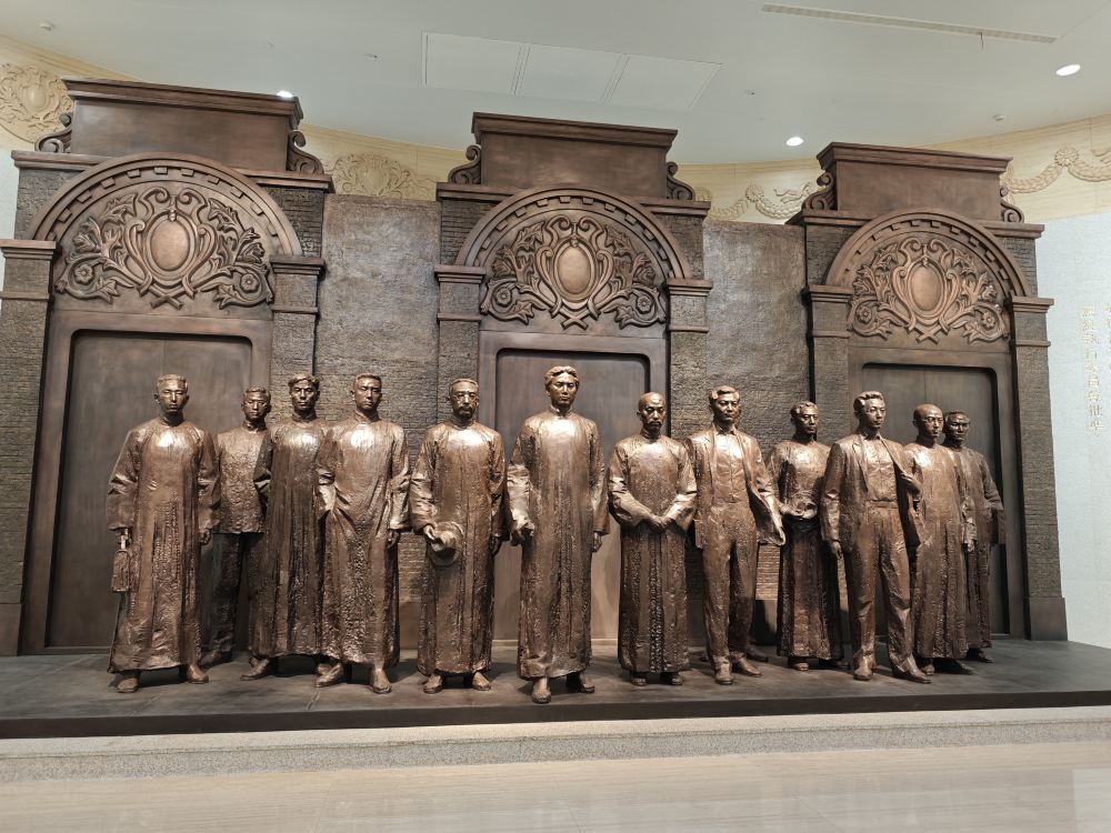 ▲ 1921년, 중국 공산당 제1차 전국대표대회에 참석한 13명의 대표 동상입니다. 그들의 이름을 말할 수 있나요?