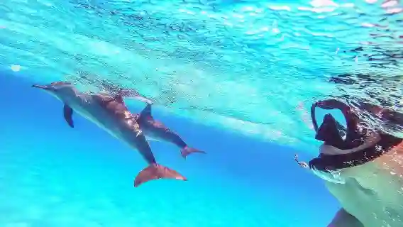 넓은 바다에서 돌고래를 관찰하거나, 발견하거나, 함께 수영하세요
