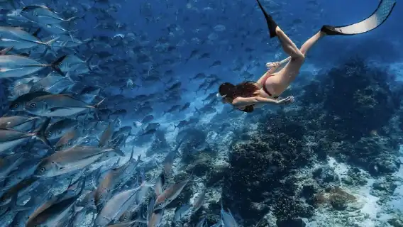 수많은 산호초와 풍부한 해양 생물이 보기만 해도 아찔합니다.