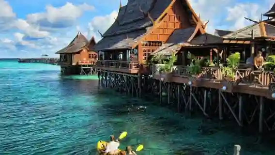 현지 럭셔리 워터빌라는 모두 보르네오 현지 자재를 사용해 지어졌습니다. 창문을 열면 바다가 바로 보입니다.