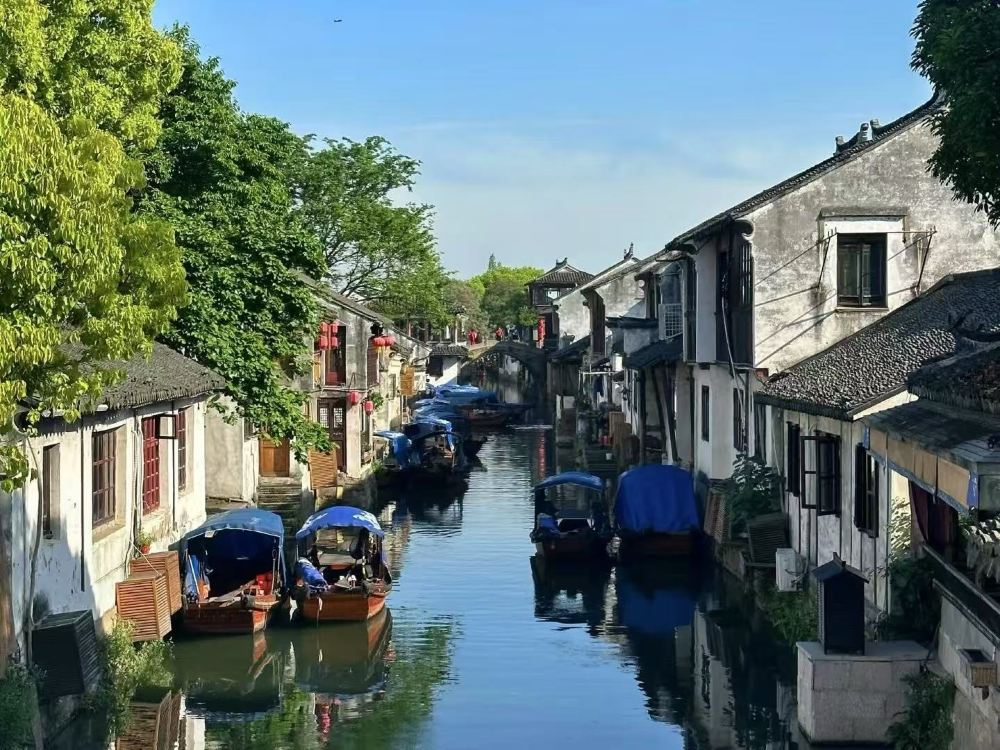 (4) 15:00 오늘 일정의 하이라이트는 쑤저우 인근의 저우좡 수향 마을 방문입니다. 저우좡은 중국 국가 5A급 관광지로, 중국 최초의 역사문화 마을 중 하나이자 국가급 아름다운 생태 마을로 지정되어 있습니다. 1999년에는 유네스코 세계문화유산 잠정 목록에 등재되었고, 유엔으로부터 ‘세계 우수 생태 관광지’로도 선정되었습니다.