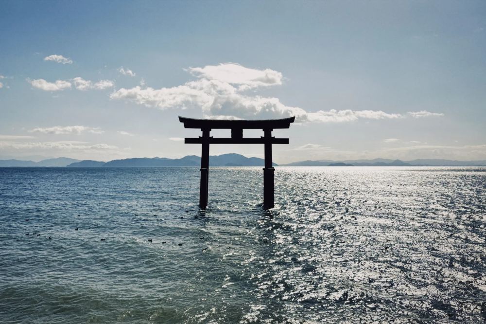 ▲ 시라히게 신사는 약 1900년 전에 건립되었으며 오미에서 가장 오래된 신사로 일본 유산 스토리 구성 요소 중 하나로 선정되었습니다. 이곳은 수평선 위로 떠오른 오키시마 섬이 배경을 이루고, 어선이 호수 위의 토리이 사이를 지나가는 풍경이 특히 아름다운 명소입니다.