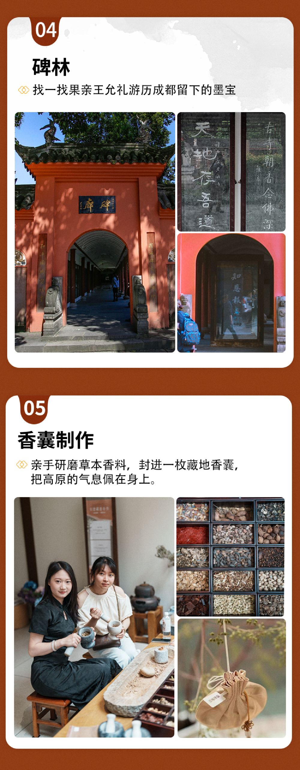 - 1. 티베트 향 주머니 만들기 - 전통 티베트 약재 제조법을 배우고, 티베트 약재를 손으로 으깨서 주머니에 넣습니다.
