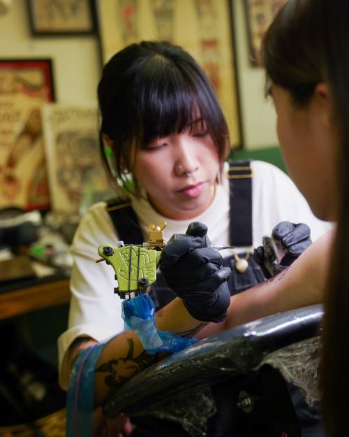 최근 몇 년 동안 션은 홍콩의 전통 타투 스타일을 연구하는 데 집중해 왔으며, 그의 작품은 점차 섬세한 선과 디테일을 묘사하는 방향으로 변화해 왔습니다. 그는 홍콩 타투 문화의 고유한 시각 언어를 계승하고, 자신의 작품을 통해 홍콩 타투의 정신과 미학을 재해석하는 데 전념하고 있습니다. 이를 통해 한때 거리에서 유행했던 이 스타일이 현대에 다시 인정받고 가치를 인정받도록 돕고 있습니다.