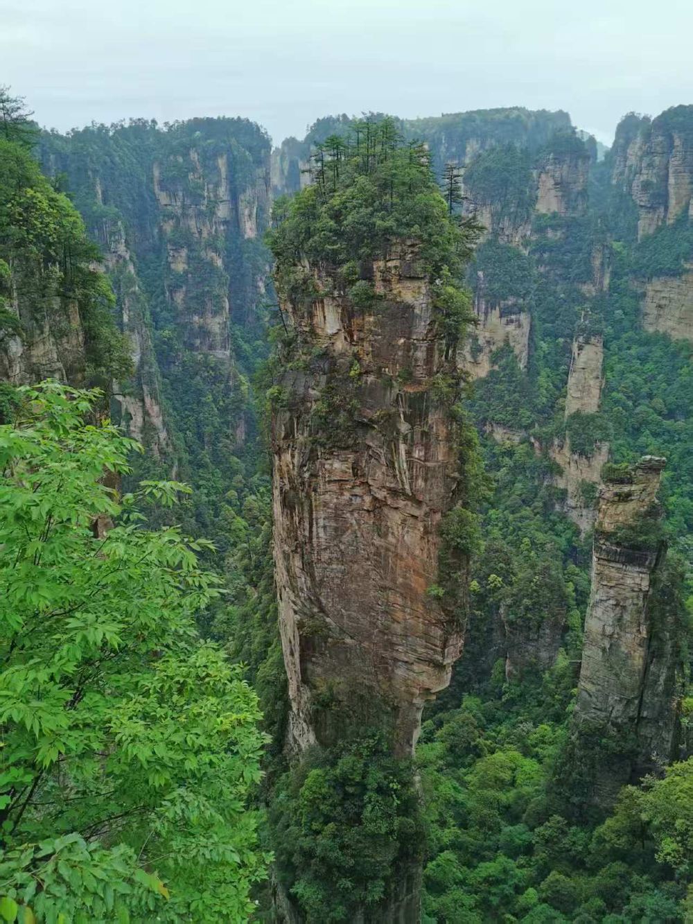 ▲ 건곤주(乾坤柱)는 장자제의 '3천 개의 기이한 봉우리' 중 하나입니다. 이 봉우리의 모양은 매우 독특하며, 깊은 계곡에 우뚝 선 거대한 돌기둥이 푸른 소나무와 어우러져 장관을 이룹니다. 또한 영화 '아바타'에 등장하는 공중에 떠 있는 '할렐루야 산'의 실제 배경이 된 곳이기도 합니다.