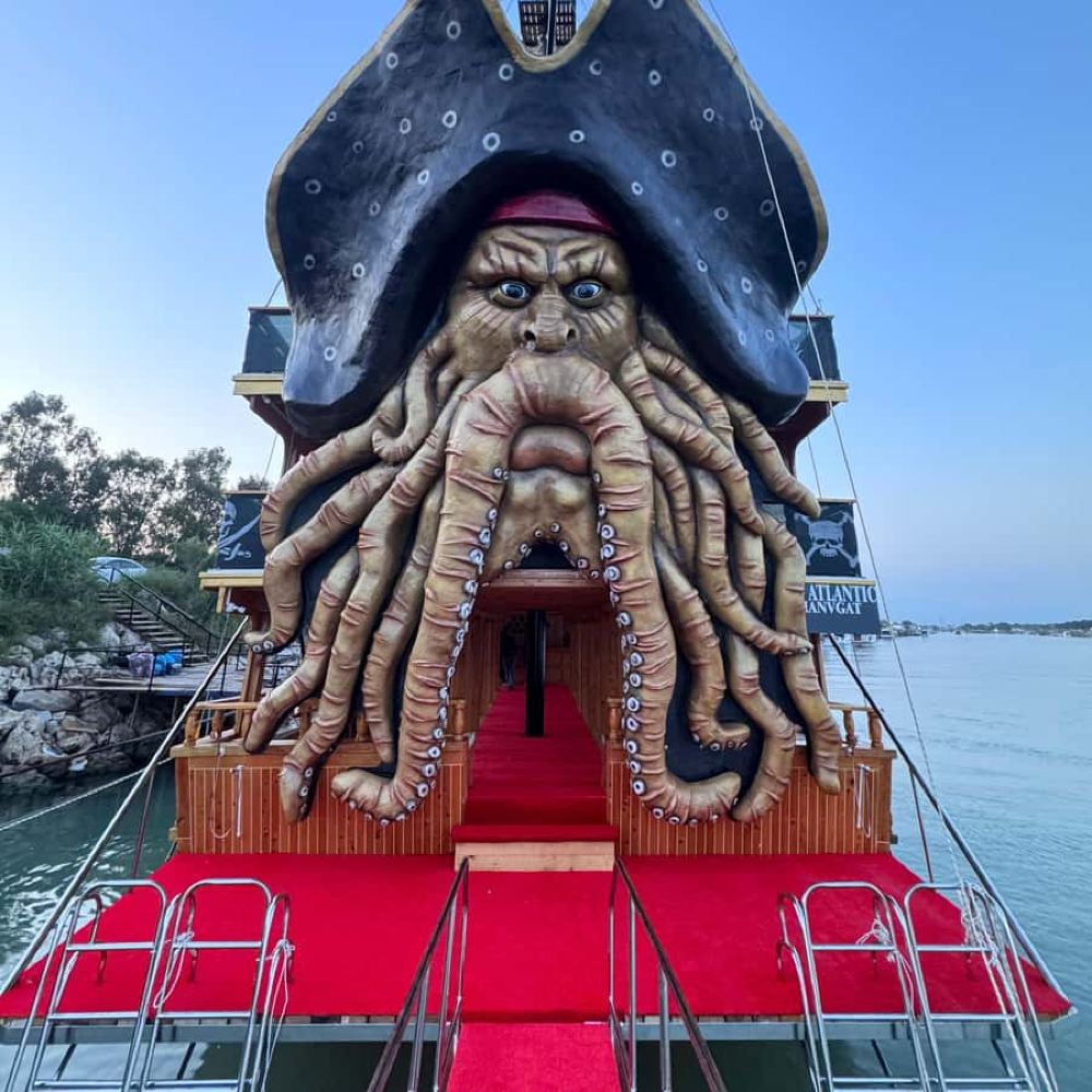 거대한 문어 모양의 선수상이 달린 해적선의 인상적인 입구로 잊지 못할 모험이 시작될 분위기를 자아냅니다.