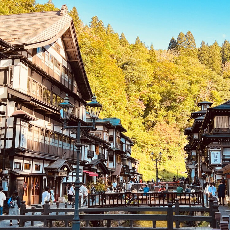 ▲ 사계절 아름다운 은산 온천 거리 - '센과 치히로의 행방불명'에 나온 온천과 같은 풍경. 500년 역사를 자랑하는 이 온천 거리에서 현지 인기 온천 '노토야'는 미야자키 하야오의 '센과 치히로의 행방불명'의 모티프가 되었습니다. 에도 시대에 요양 온천으로 유명했으며, 오늘날에도 거리 곳곳에 당시의 정취가 고스란히 남아있습니다. 고요한 은산 강 양쪽에는 일본 다이쇼 시대부터 쇼와 초기에 지어진 목조 여관들이 줄지어 있습니다. 온천 거리에는 무료로 이용할 수 있는 족탕(와라쿠 족욕)과 당일 왕복 가능한 두 개의 공중목욕탕이 있으며, 귀여운 인형을 전시한 기념품 가게와 길거리 음식을 즐길 수 있는 노점들이 곳곳에 있어 산책의 즐거움을 만끽할 수 있습니다. 걸으면서 즐길 수 있는 추천 음식으로는 야마가타 현에서 생산된 밀가루로 만든 카레빵과 향긋한 '립식 두부'가 있습니다.