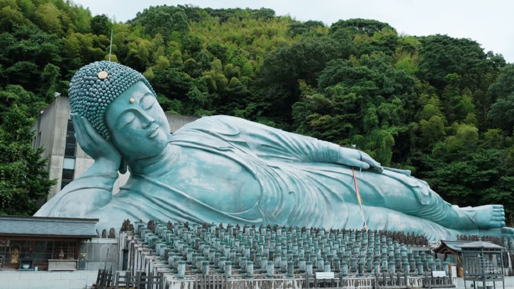 ▲ [난조인] 거대한 청동 와불로 유명합니다. 사원 내부는 고요하고 평온한 분위기로, 길가의 지장보살 석상은 엄숙하면서도 사랑스러운 모습을 하고 있어 마음을 가다듬고 기도하기에 좋은 영험한 장소입니다. 특히 재물과 먼 거리의 복을 비는 데 뛰어나다는 소문이 있으며, 행운을 빌기 위해 황금 불족부적을 구입할 수도 있어 선(禪)의 의미와 민간 신앙이 절묘하게 조화를 이룹니다.