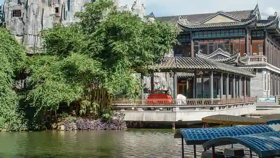 고요한 리완호 공원에서 광둥 오페라의 라이브 공연을 감상하세요
